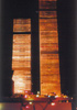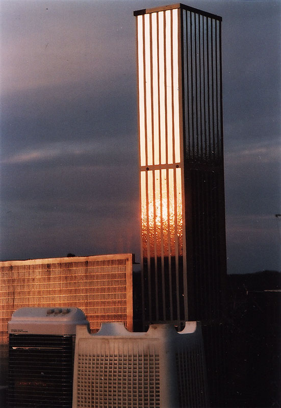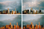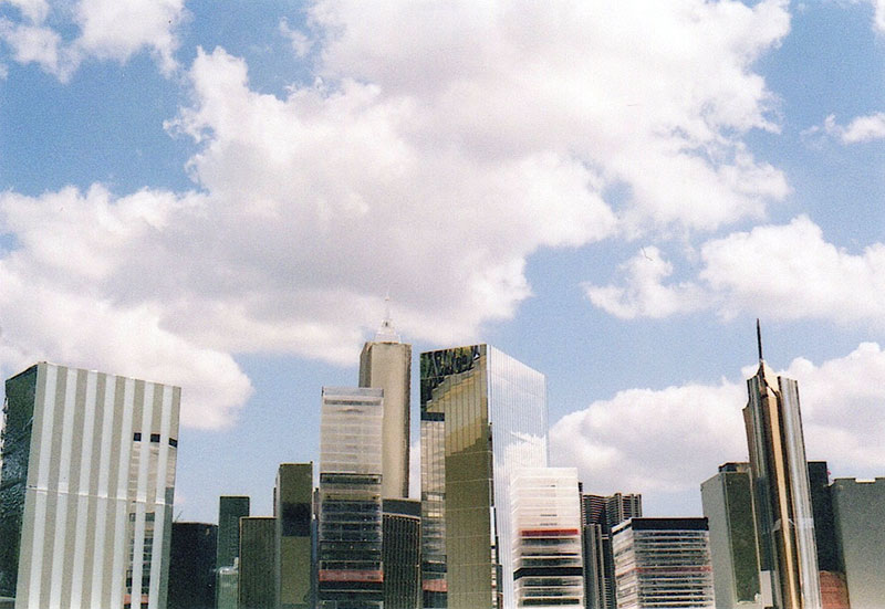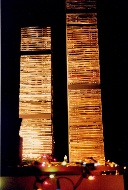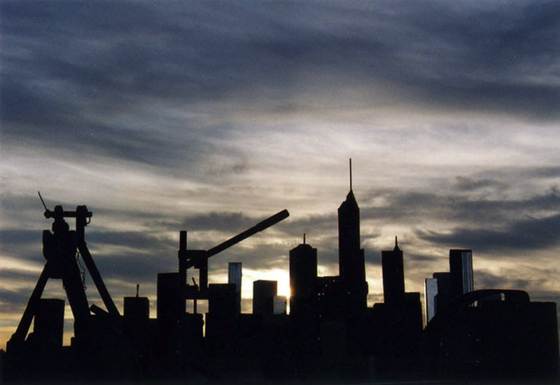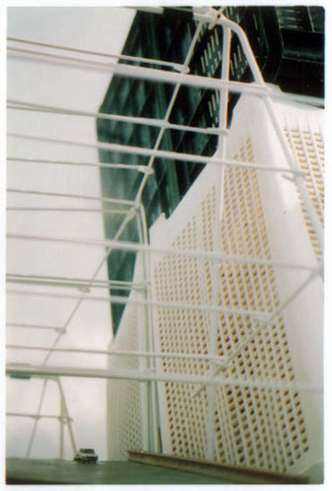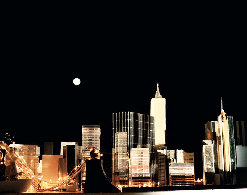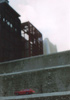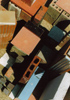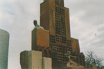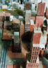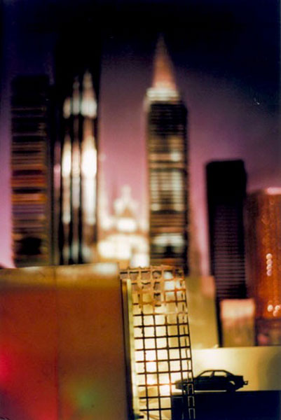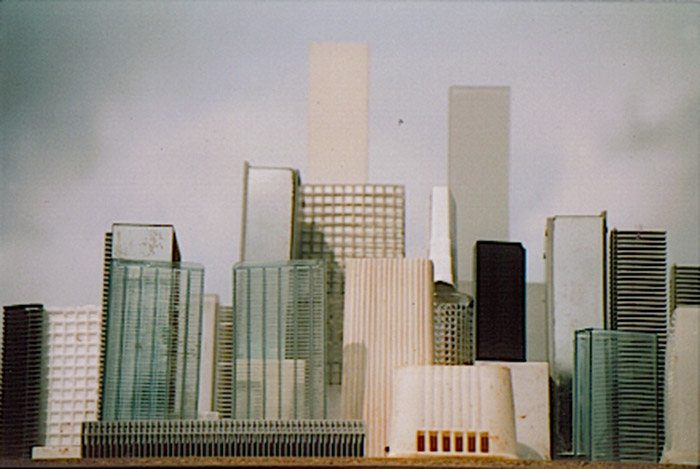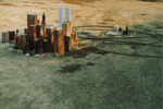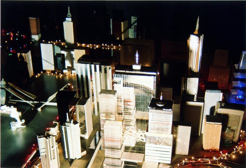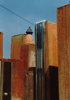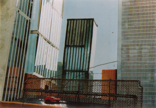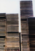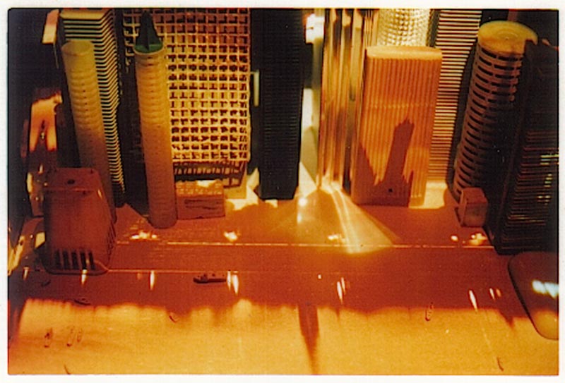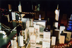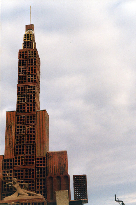 Prises de vue en extérieur d'installations d'objets et matériaux divers: briques, parpaings, siporex, carrelages, rails pour diapositives, boites, cederoms, guirlandes lumineuses,voitures miniatures, cageots en plastiques et en bois peint, hotte pour cuisine, radiateur électrique , panier et étendoir à linge, statuettes en plâtre, mosaïque miroir.